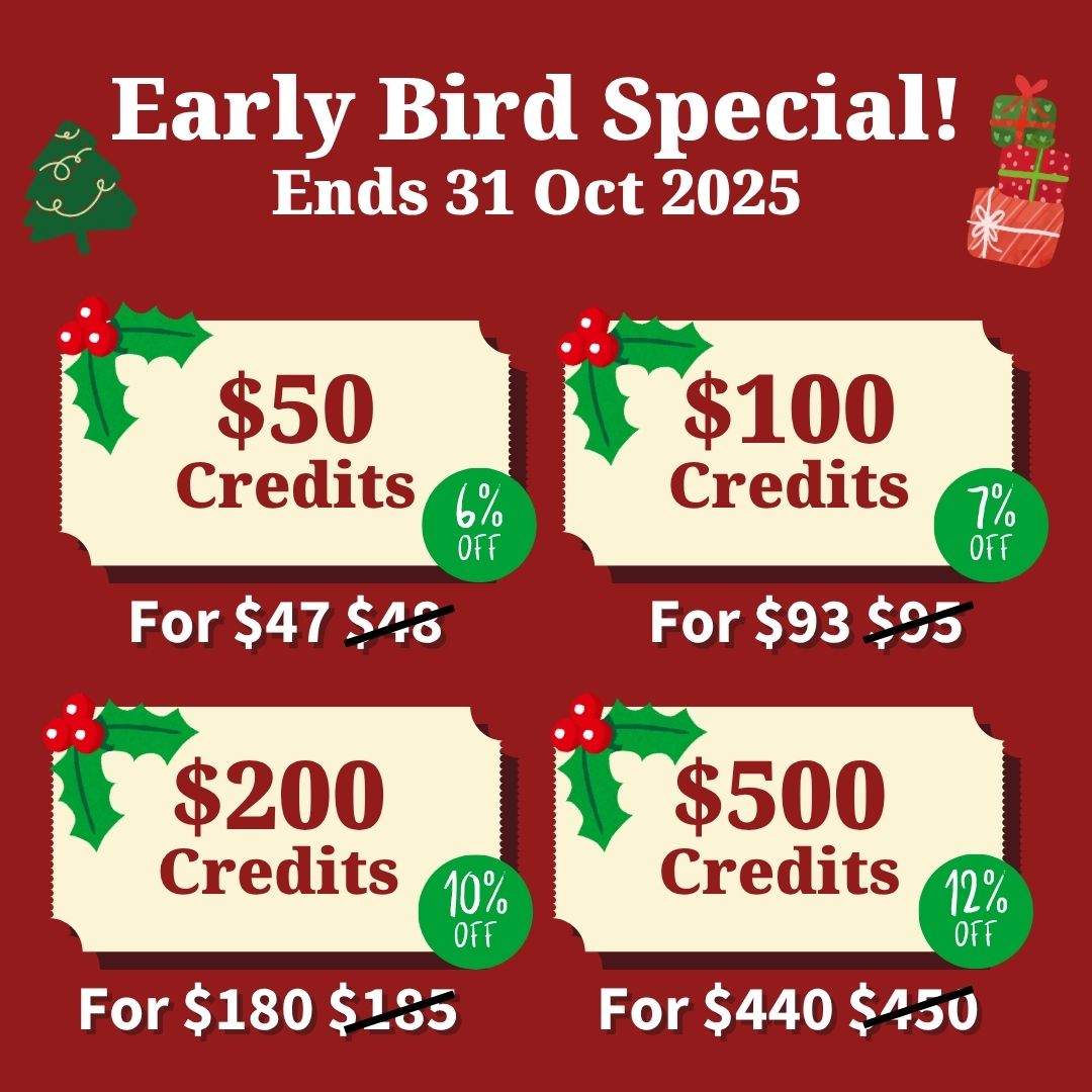 Buy more, save more! All credits can be used to offset your purchases at our Warehouse Sale! 🥳🥳